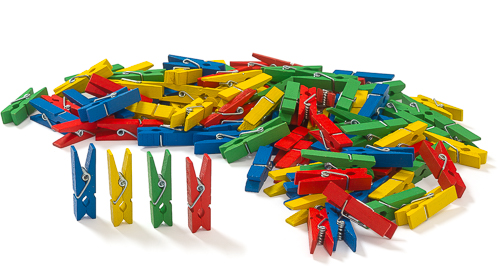 Ideal für den Einsatz mit Klammerkarten. Sie erhalten einen Beutel mit 100 Klammern (4 Farben zu je 25 Stück).