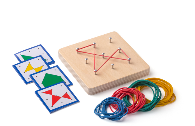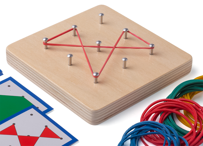 3×3 Geobrett mit Aufgabenkarten und Legevorlagen