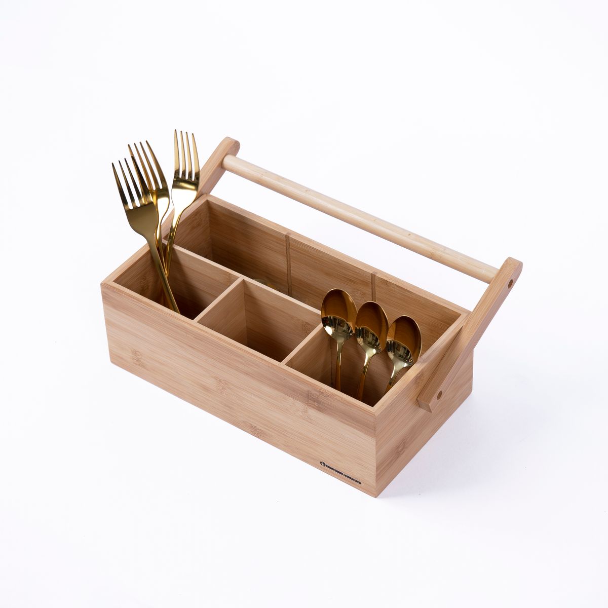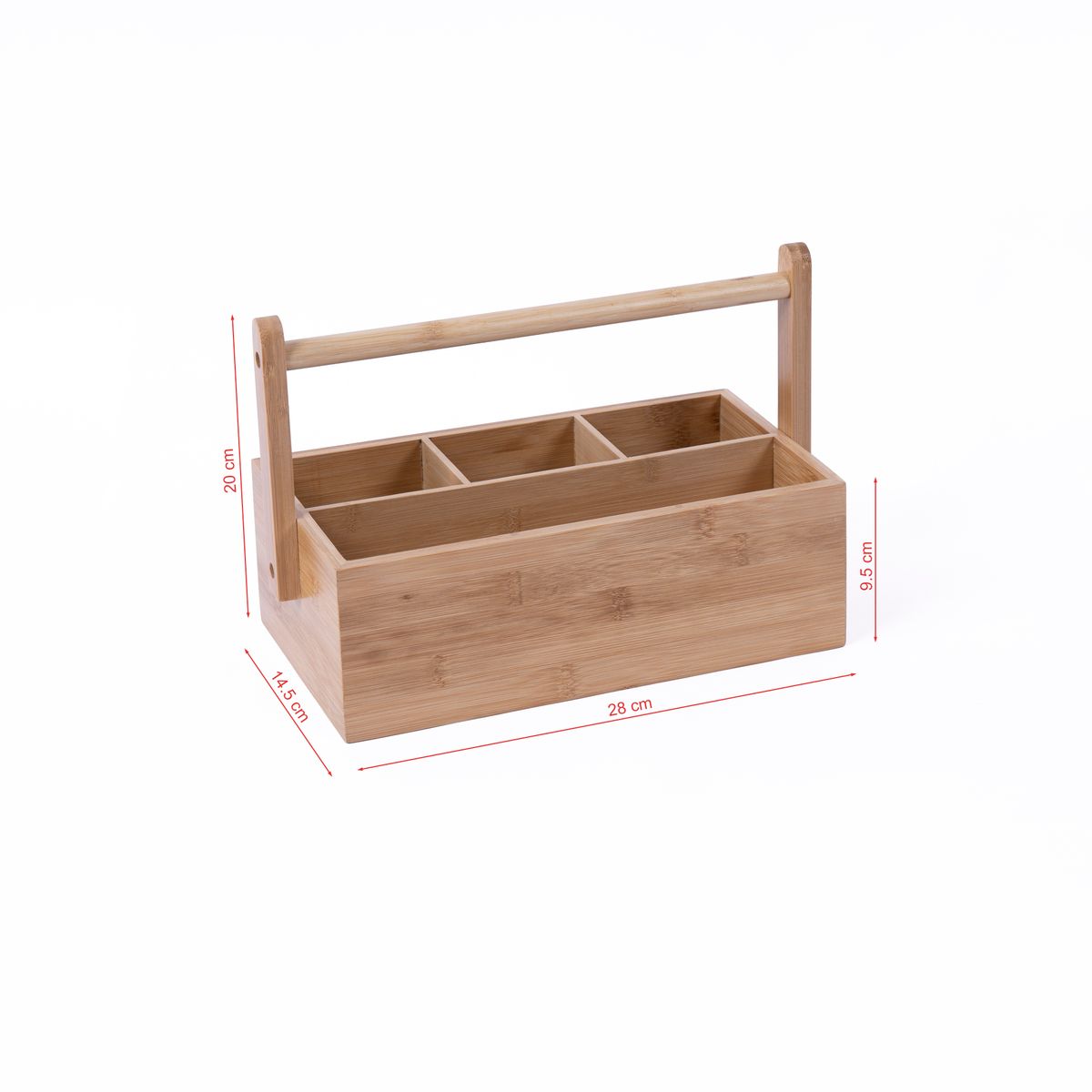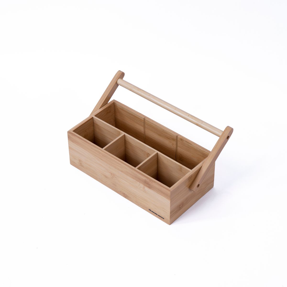 4-Fächer-Schreibtischorganizer aus Bambus – mit Henkel zum Tragen