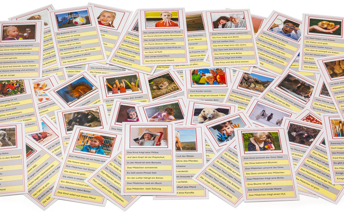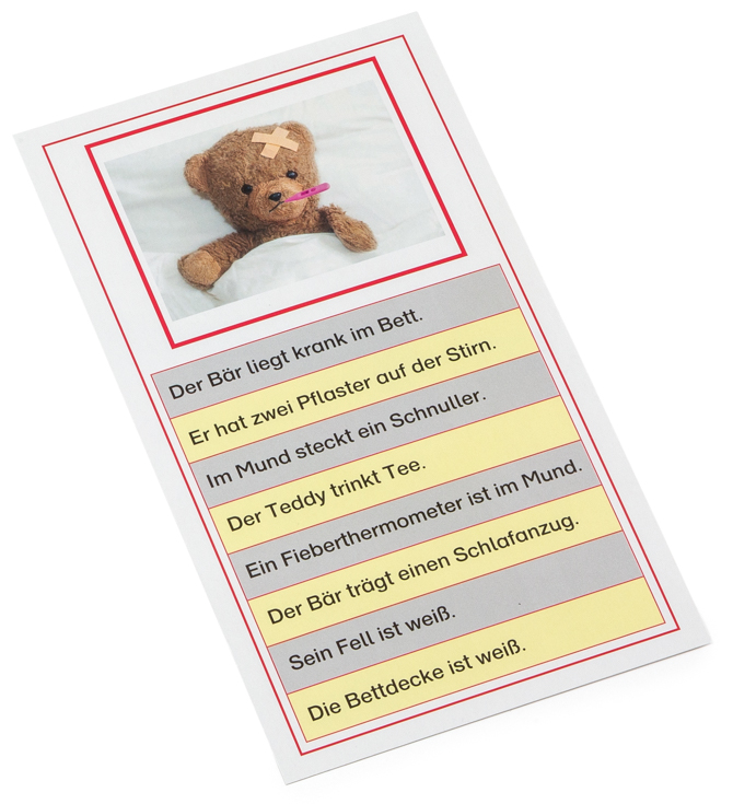 Zu Fotos müssen die passenden Sätze herausgelesen und mit einer Klammer markiert werden.
