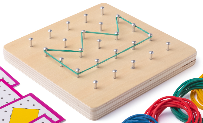 5×5 Geobrett mit Aufgabenkarten und Legevorlagen