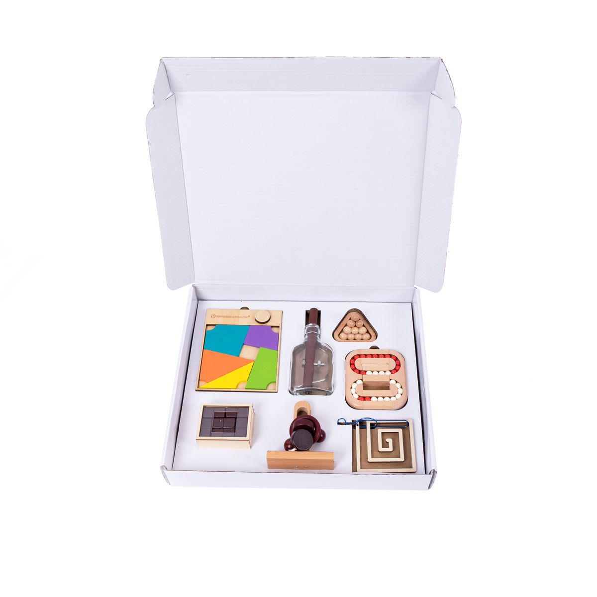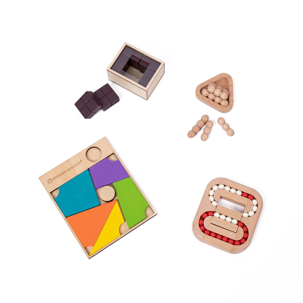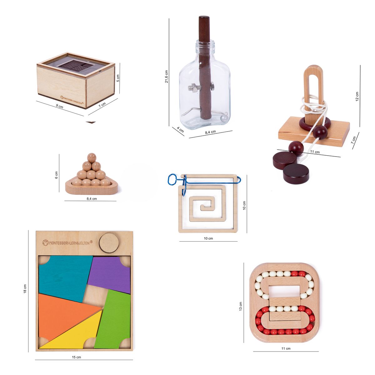 Sieben vielfältige Knobelspiele aus hochwertigen Materialien sorgen garantiert für viele Stunden Rätselspaß für Groß und Klein. Jedes Spiel hat seinen ganz besonderen Reiz!