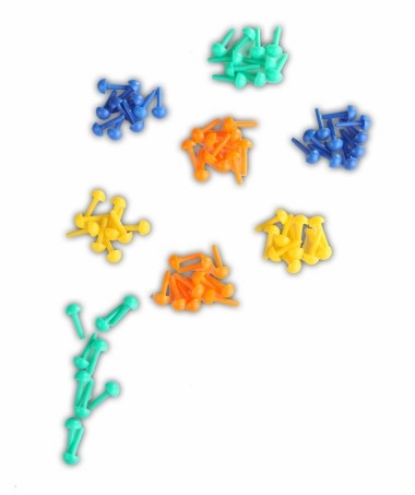 Jeweils 20 blaue, grüne, gelbe und orange Stöpsel für die Arbeit mit den Stöpselkarten.