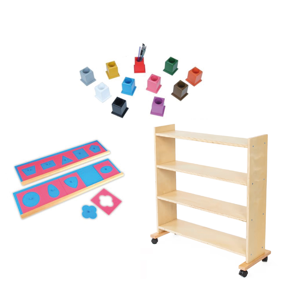 Dieses Set enthält ein hochwertiges Regal für die Zeichenfiguren, 11 Stiftständer und metallene Einsatzfiguren mit zwei Holztafeln.