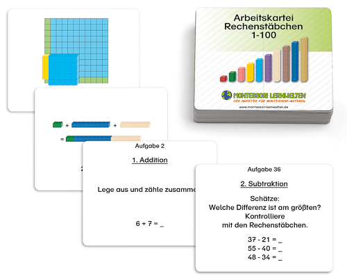 Die Rechenstäbchen in den Montessori-Farben bieten das perfekte Einstiegsmaterial in dieWelt der Algebra.
