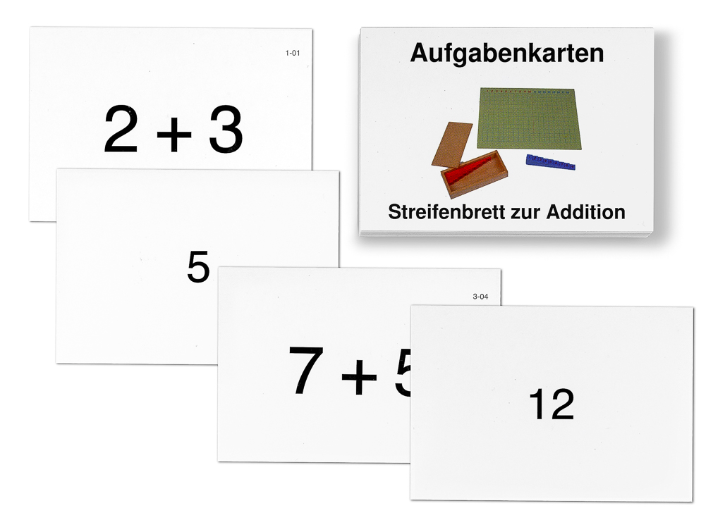 Mit diesen Aufgabenkarten schöpfen Sie den Lernumfang des Streifenbretts zur Addition richtig aus. Die passende Holzbox können Sie bei uns ab dem 15. Mai bestellen.