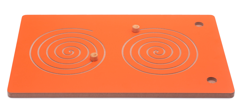 Dieses Brett mit Schwungübungen trainiert nicht nur auf ideale Weise die Zeichen- und Schreibmotorik beider Hände, sondern ebenso die beiden Gehirnhälften.