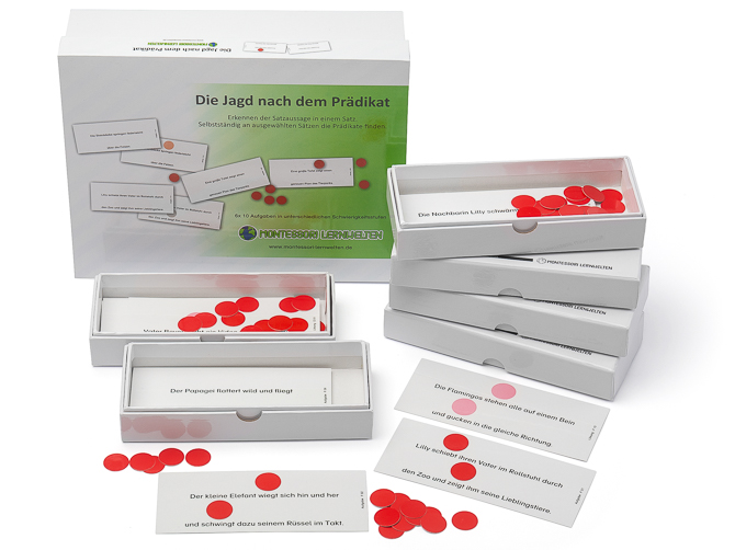Mit diesem Lernspiel beginnt idealerweise die syntaktische Arbeit in der Grundschule. Mit insgesamt 60 Sätzen können die Kinder hier üben, das zentrale Satzteil Prädikat eindeutig zu bestimmen.
