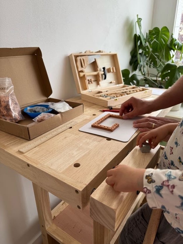 Kinder sind fasziniert von den handwerklichen Tätigkeiten der Erwachsenen und wollen nichts lieber, als selbst an der Werkbank aktiv werden. Dafür eignen sich unsere Kinderwerkbank mit Werkzeugkoffer bestens.