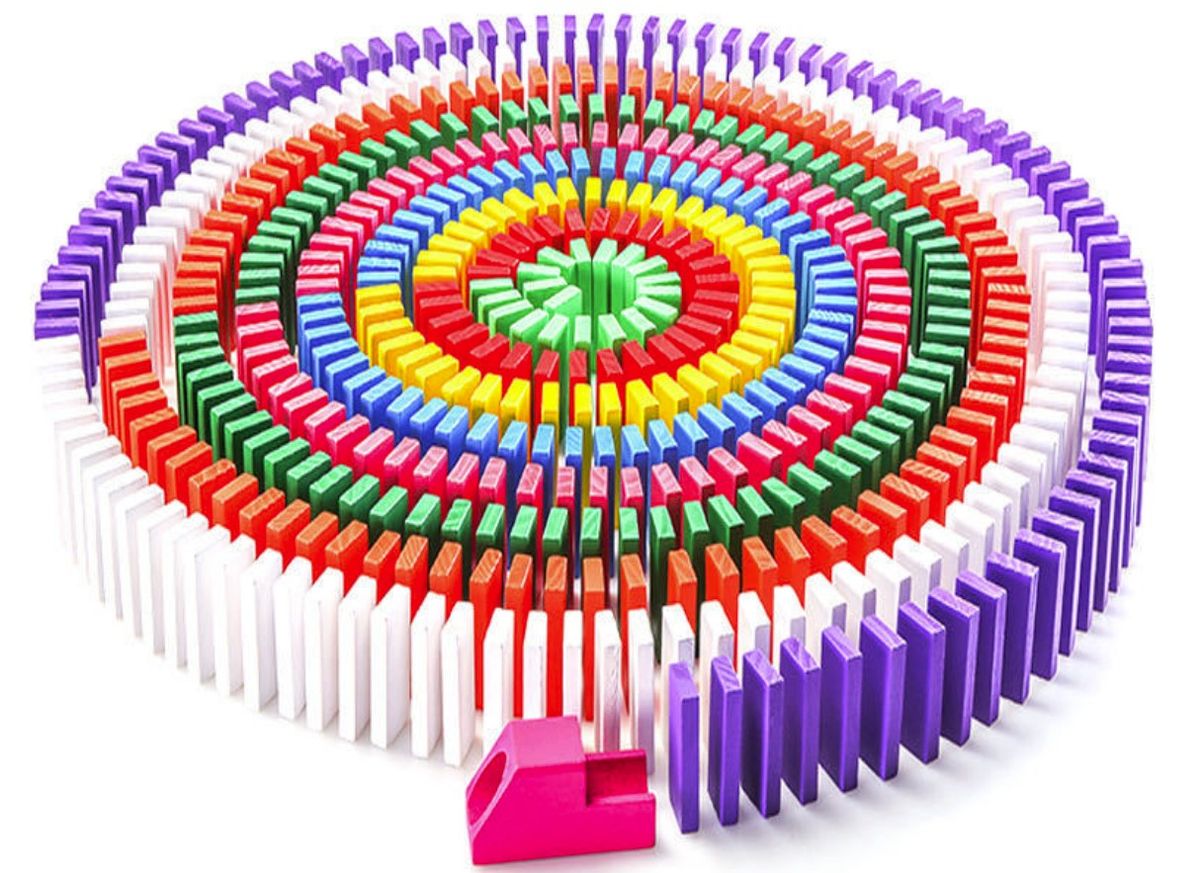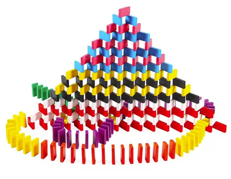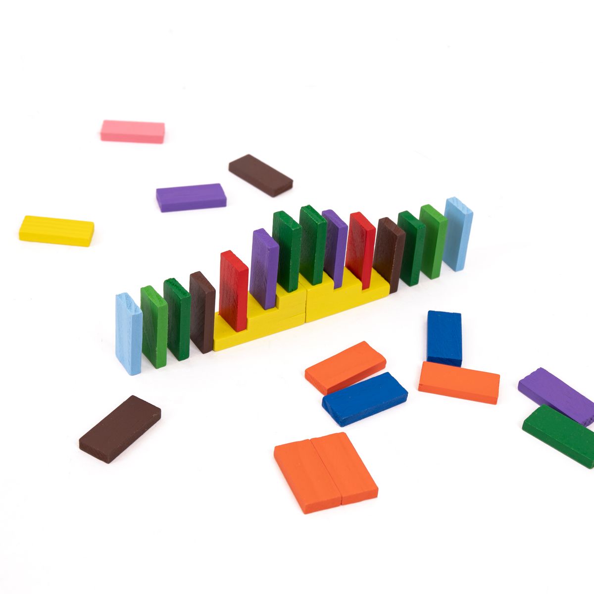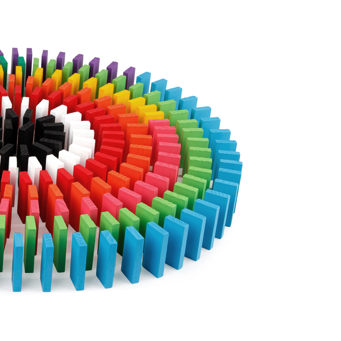 Dieses Set besteht aus 360 Holz-Dominosteinen in 12 leuchtenden Farben und bietet unendlich viele Möglichkeiten für kreative Bauprojekte, strategische Spielrunden und gemeinsames Erkunden.