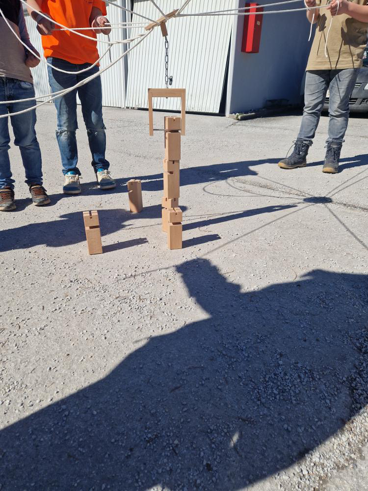 Der Fröbelturm ist das ideale Material für die Gruppenbildung von Kindern, Jugendlichen und Erwachsenen. Ziel des Spiels ist es, gemeinsam aus den Klötzen einen Turm zu errichten.