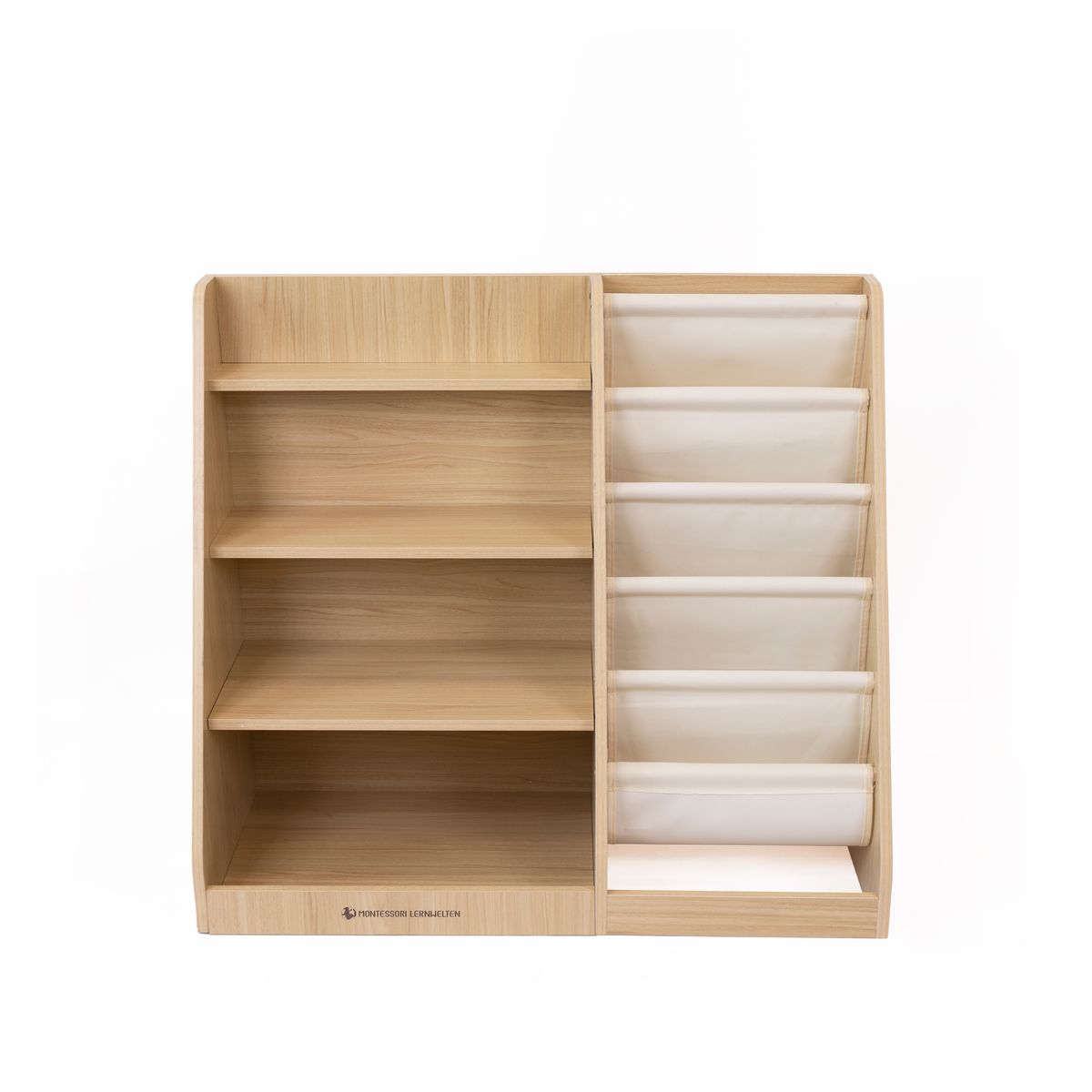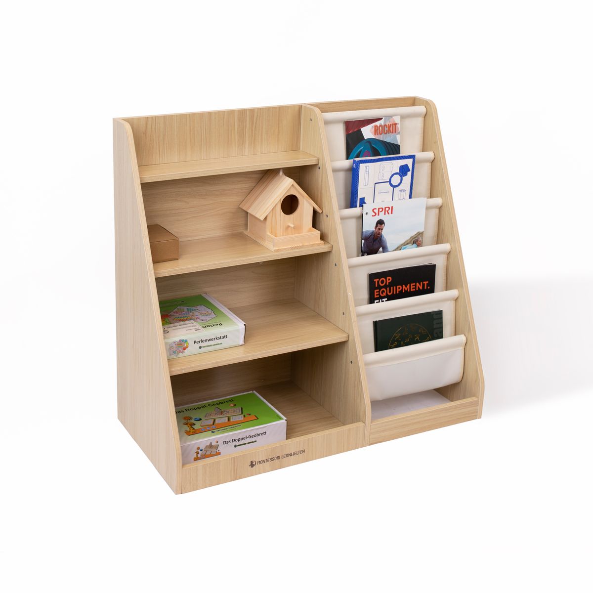 Ihr wollt eure Kinder zur selbständigen Materialwahl und zum Ordnung halten ermuntern? Mit diesem Kinderregal gelingt das ganz einfach. Kinder bekommen durch die ergonomische Form des Regals schnell einen Überblick über seinen Inhalt und können so selbstbestimmt zwischen verschiedenen Angeboten wählen.