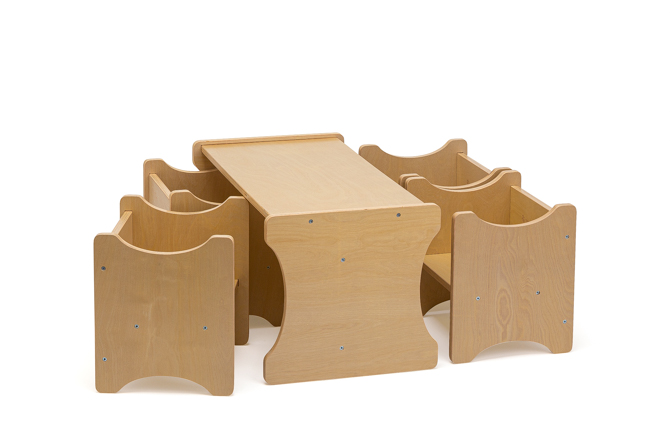 Kindersitzgruppe mit 4 kleinen Stühlen und einem Tisch – abwischbare Premiumqualität