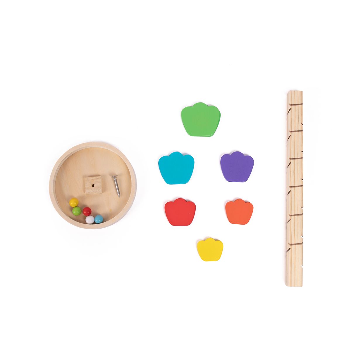 Der Klangbaum schult die Größenwahrnehmung, die Unterscheidung von Farben und die Differenzierung von Tönen. Vor allem aber ist der Klangbaum auch eine optische Bereicherung des Kinderzimmers.