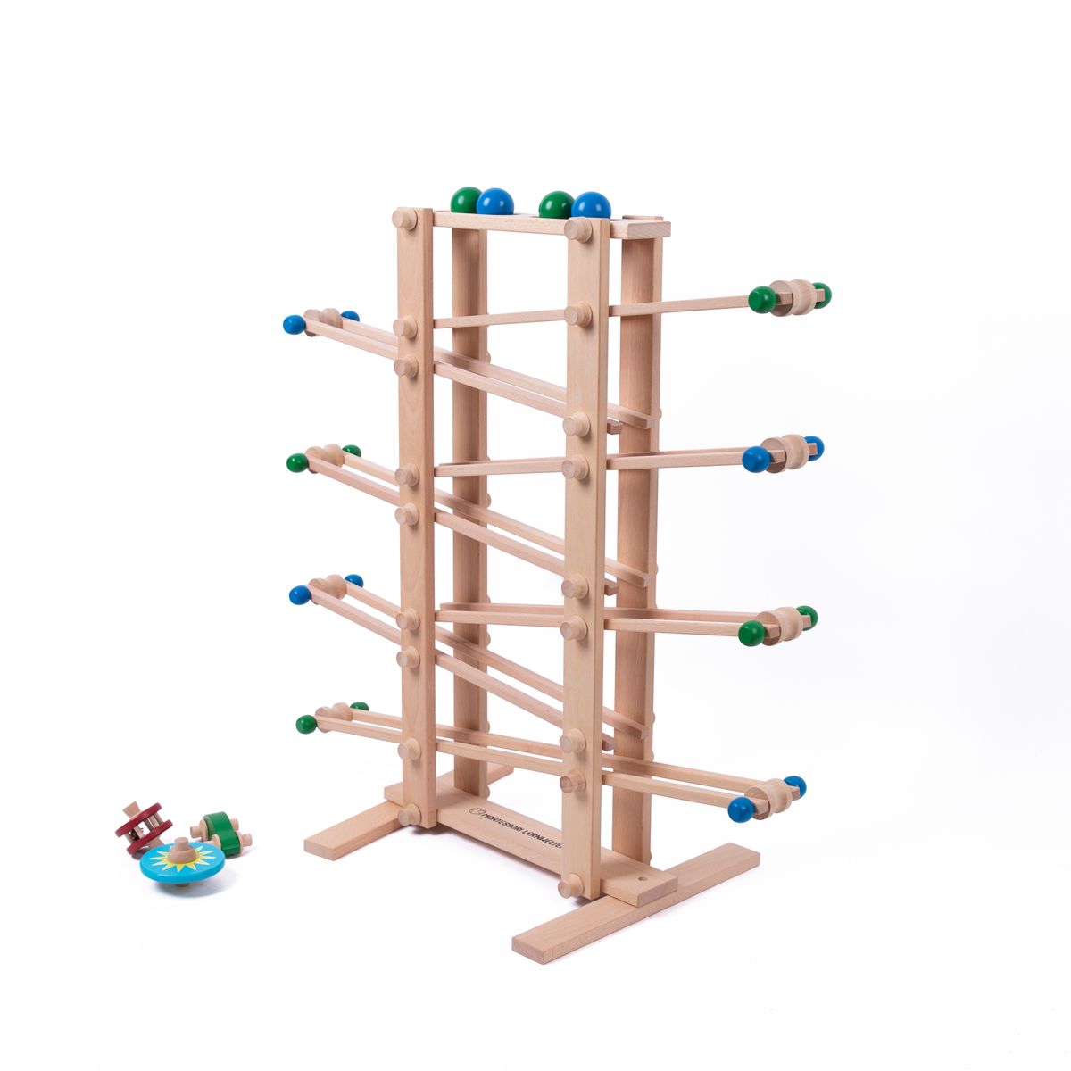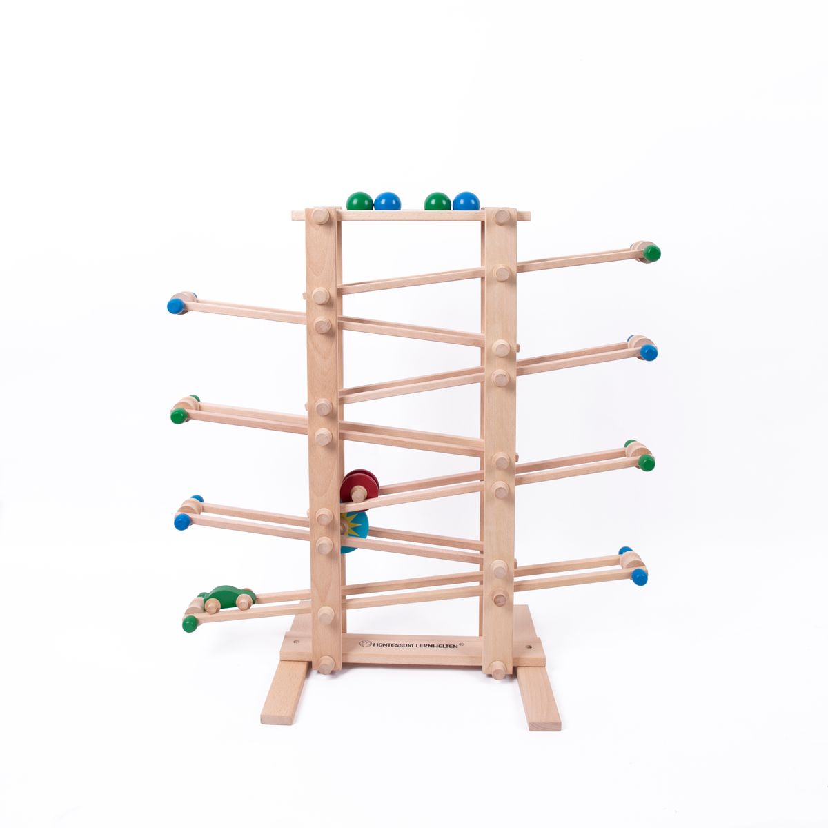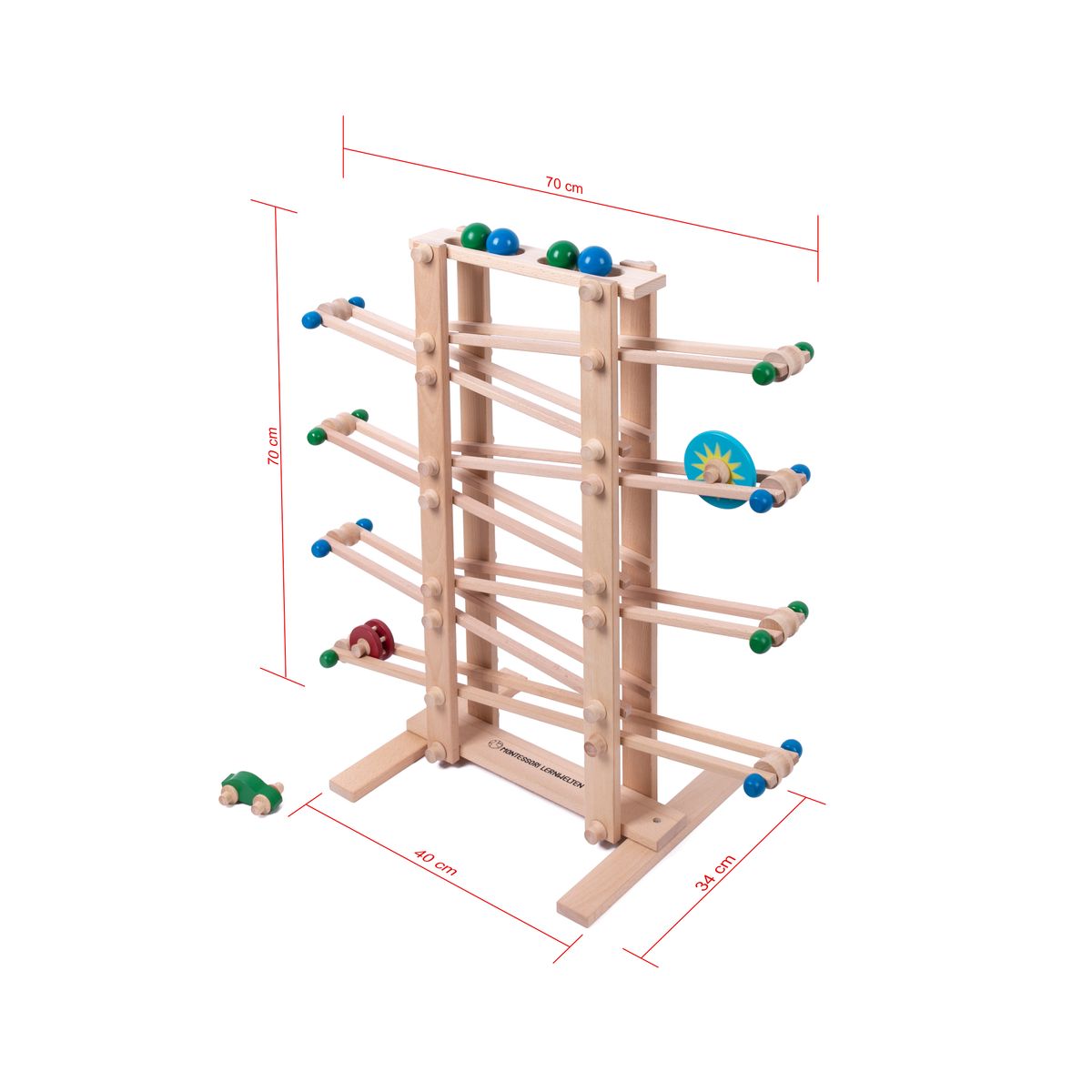Dieses liebevoll gefertigte Kugel- und Auto-Rollbahn aus massivem Holz lädt Kinder dazu ein, Bewegungen zu beobachten, Zusammenhänge zu entdecken und sich ganz in das konzentrierte Tun im Hier und Jetzt zu vertiefen.