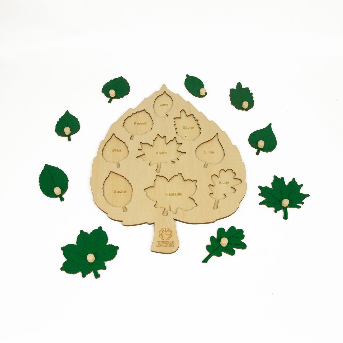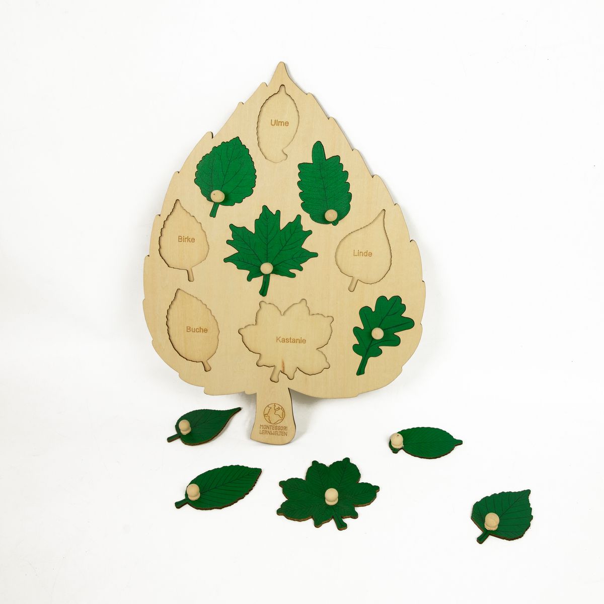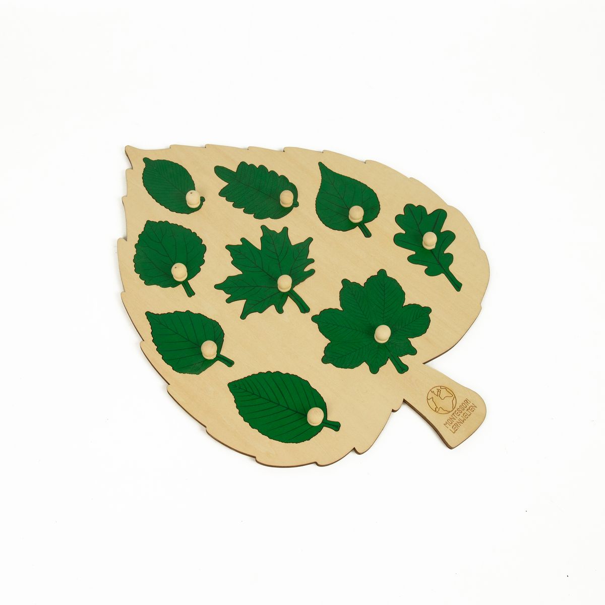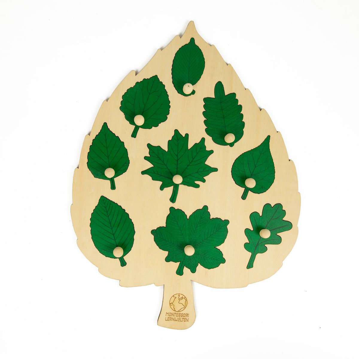 Das Laubblatt-Puzzle ist nicht nur eine attraktive Dekoration für Kinderzimmer, Kinderhaus und Klassenzimmer, sondern macht die Kinder auch spielerisch mit den neun häufigsten heimischen Blattformen vertraut.