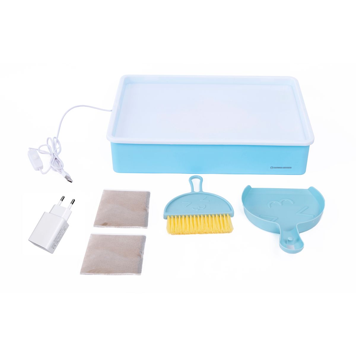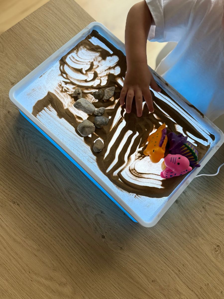 Der Leuchtkasten mit Sand ist ein innovatives pädagogisches Werkzeug, das visuelle Faszination mit taktiler Sinneserfahrung verbindet. Er besteht aus einem Kunststoffgehäuse, in dem sich die Beleuchtung befindet und einer transparenten Arbeitsfläche.
