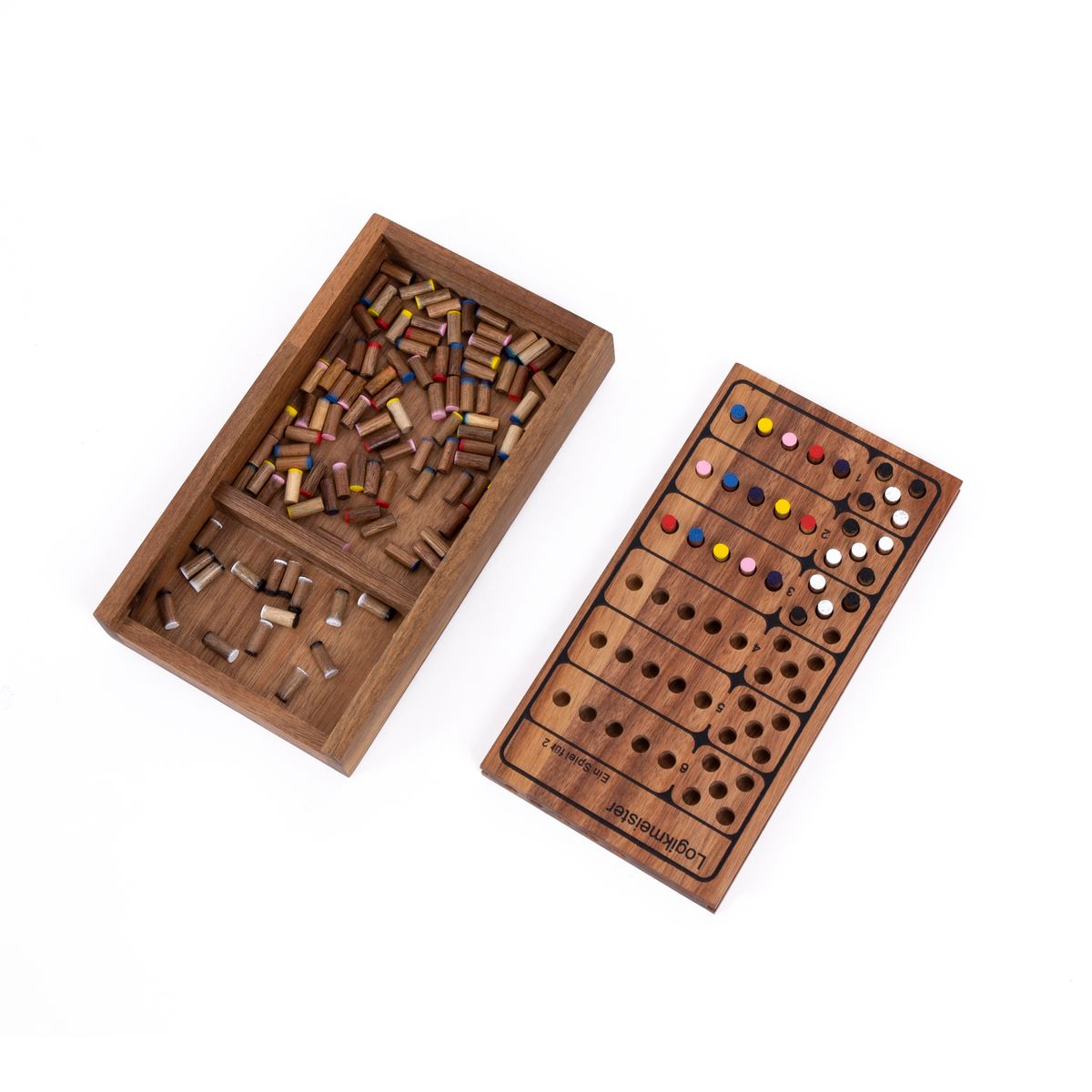 Der Logikmeister Superhirn aus Holz ist ein hochwertiges Denkspiel, das Kinder spielerisch dazu einlädt, ihre geistigen Fähigkeiten zu entdecken und zu vertiefen.