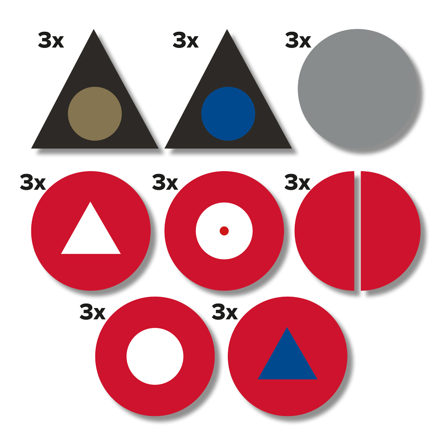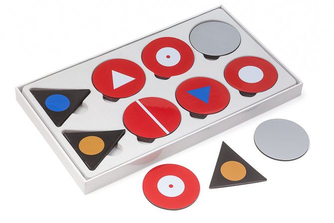 Stabile, farbechte Magnete, der graue Kreis des Infinitivs hat einen Durchmesser von 6 Zentimetern.