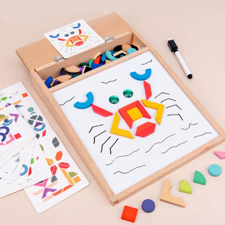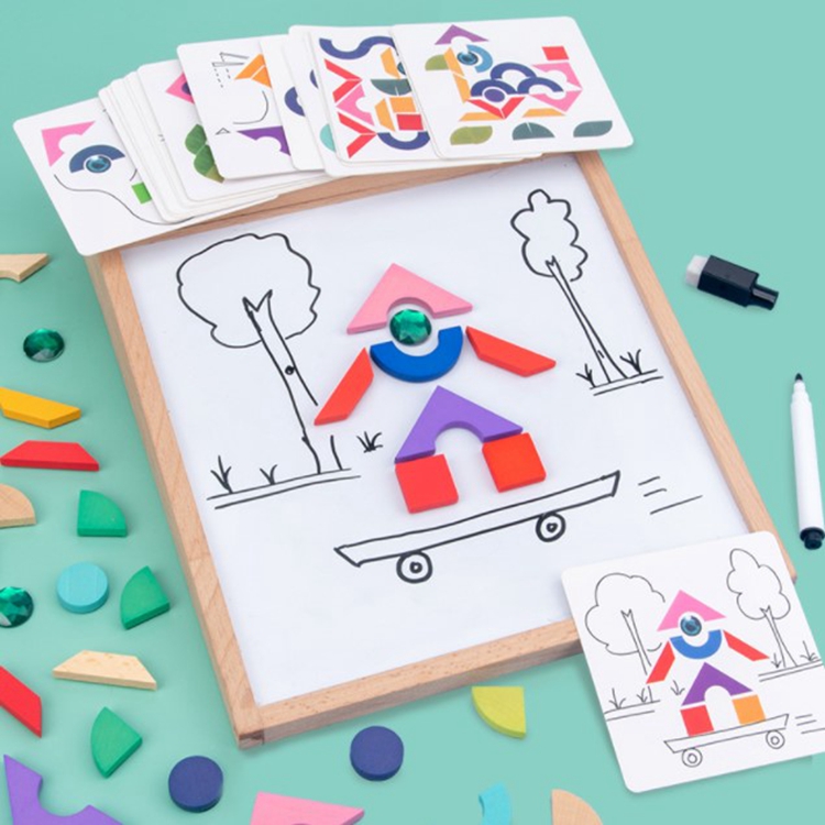 Bei dieser Zeichentafel ist wirklich an alles gedacht. Die Tafel ist in einen schrägen Rahmen eingebaut, so dass die ganze Fläche gut bemalt oder mit den Magnetformen bestückt werden kann.