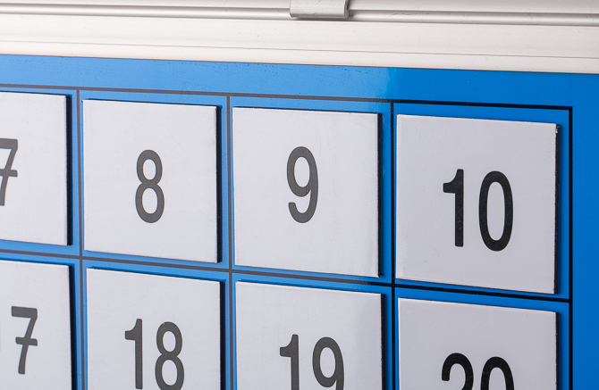 Dieses magnetische Hunderterbrett ermöglicht es, mit einer größeren Gruppe von Schüler*innen gleichzeitig zu arbeiten, weil es wie eine Tafel verwendet werden kann.