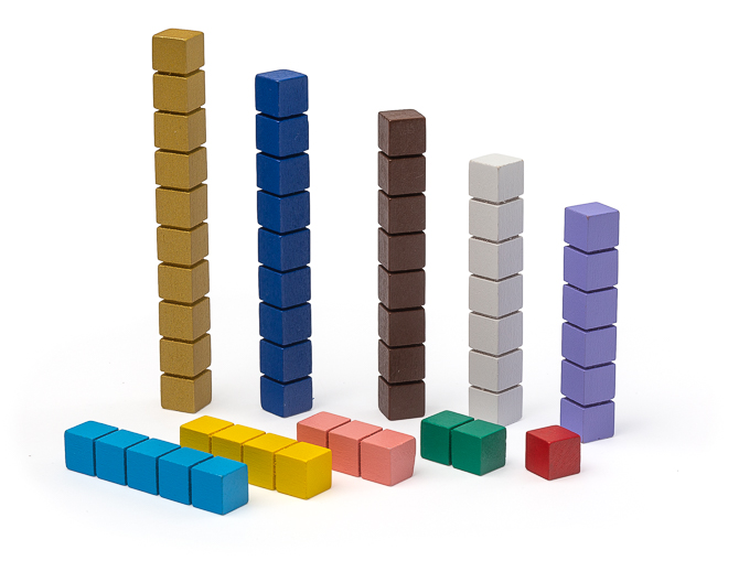 Montessori Rechenstäbchen mit Rillen aus Holz in den Montessori-Farben
