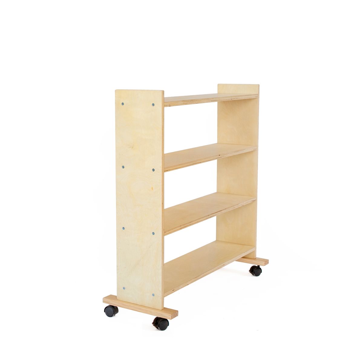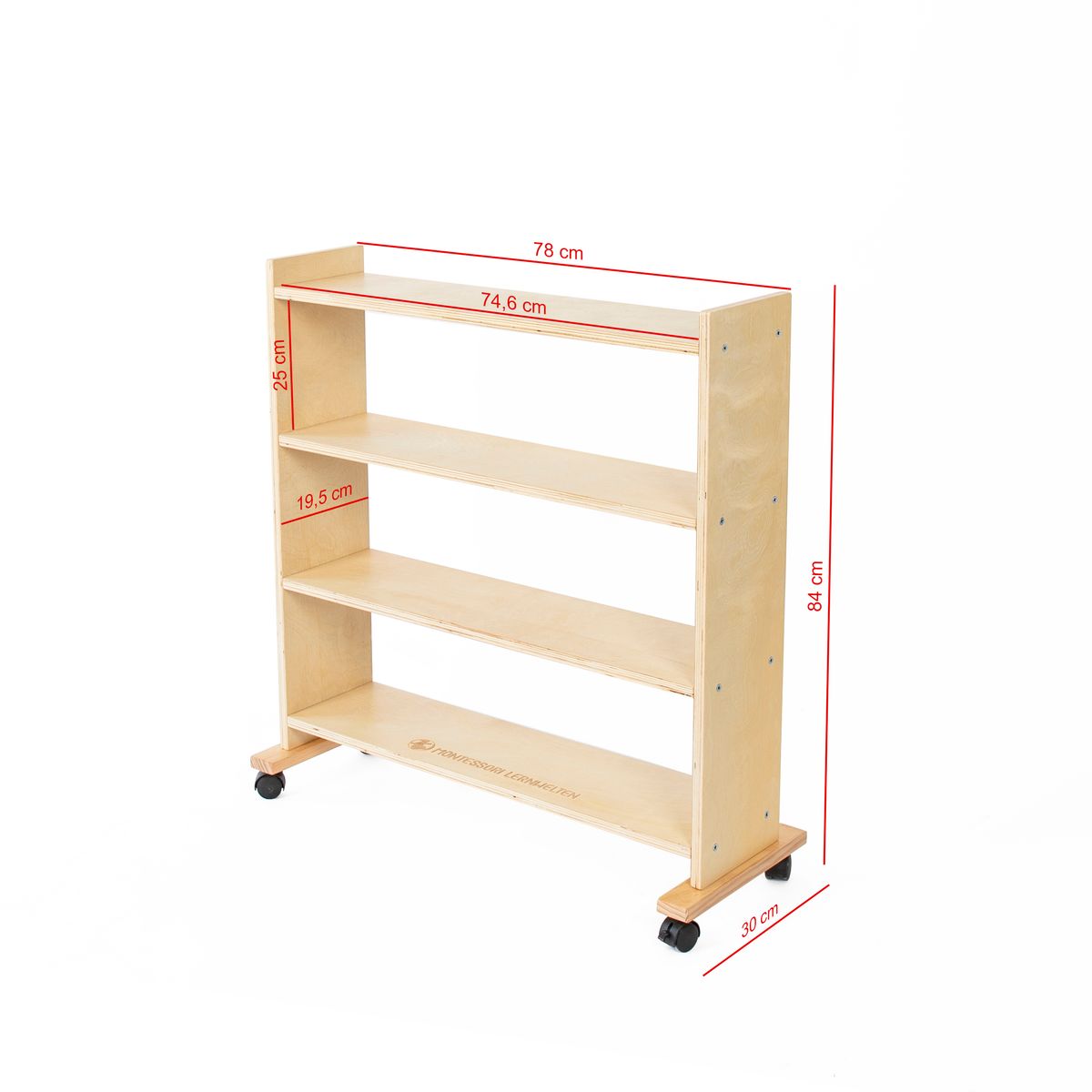 Hochwertiges Regal aus Holz inklusive Rollen. Ideal geeignet zur Präsentation verschiedenster Materialien oder als Bücherregal