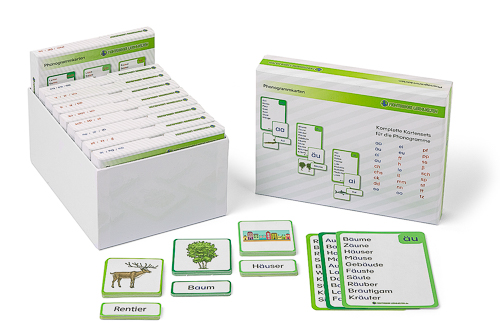 Die große Phonogramme-Box mit Legekarten zu insgesamt 27 verschiedenen Phonogrammen.