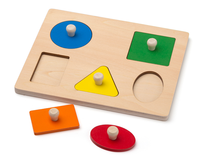 In seiner Schlichtheit ist dieses Holzpuzzle für die Kinder sehr ansprechend und eine gute Vorbereitung auf den Geometrie-Unterricht.