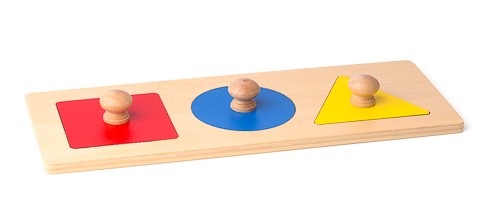 Kreis, Quadrat und gleichseitiges Dreieck in verschiedenen Farben mit großem Haltegriff aus Holz