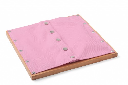 Hiermit lernen Kinder einfach und mit Druckknöpfen umzugehen. Ein hochwertiger Rahmen aus Buchenholz mit hochwertigem Kleidungsstoff (Baumwolle).