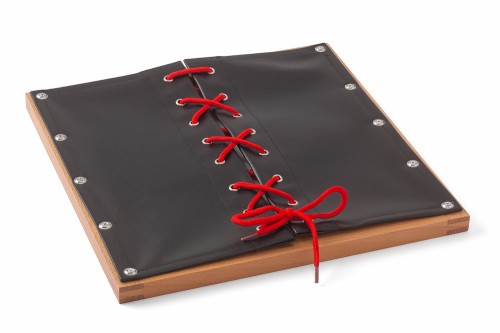 Hiermit lernen Kinder einfach und mit Schnürsenkel umzugehen. EIn hochwertiger Rahmen aus Buchenholz mit hochwertigem Kleidungsstoff (Baumwolle).