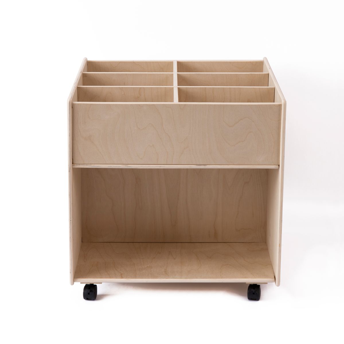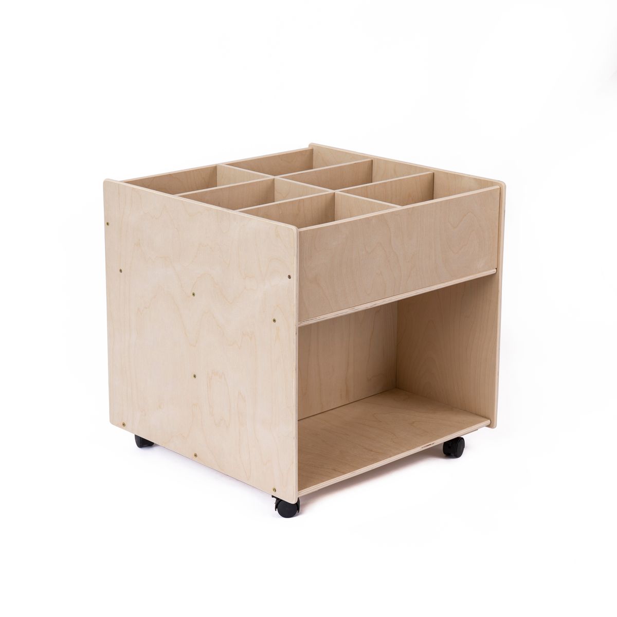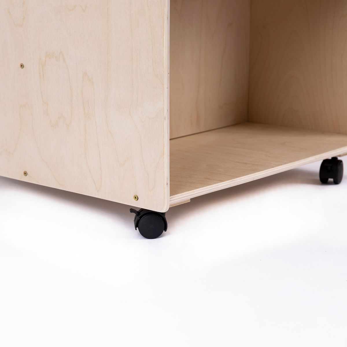 Das Rollende Bücherregal ermöglicht die Bereitstellung von Büchern und Lernmaterialien an verschiedenen Orten in einem Raum oder in einer Einrichtung. Das Regal bietet jede Menge Stauraum für Bücher, Zeitschriften und Malutensilien.