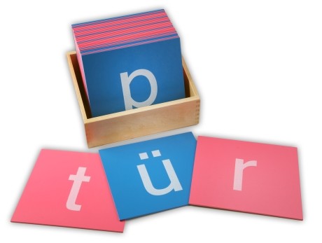 Sandpapierbuchstaben – Kleinbuchstaben im Holzkasten