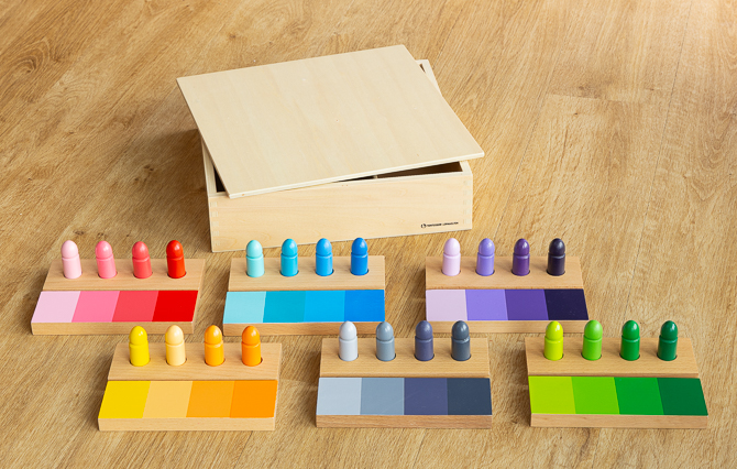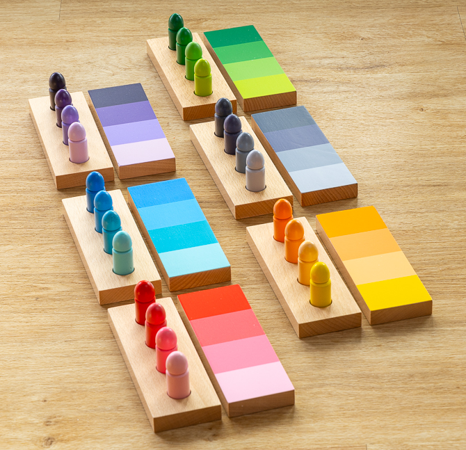 Wahrnehmen von Farbabstufungen, Wortlektionen wie hell/dunkel, heller/dunkler, Stimmungsbeschreibung durch Farben