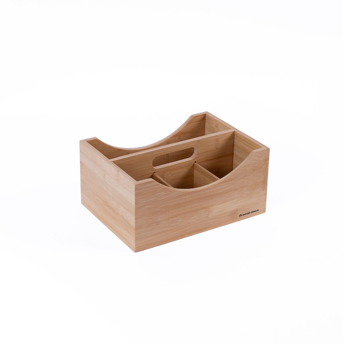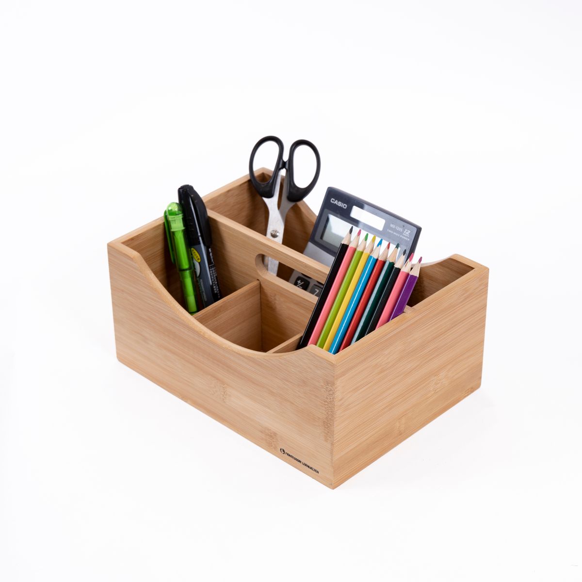 Schreibtischorganizer aus Bambus – mit 4 Fächern und Griff