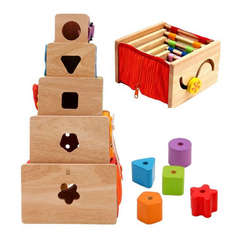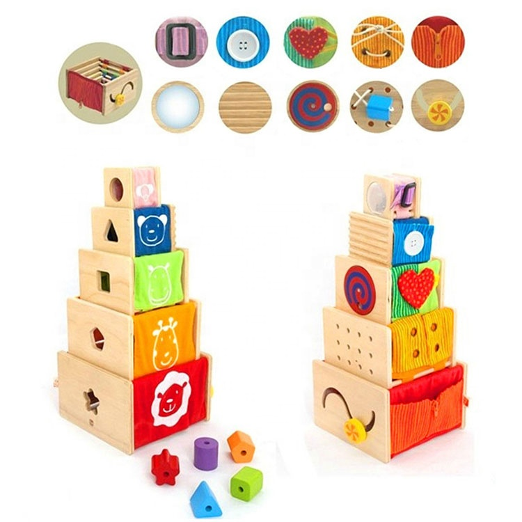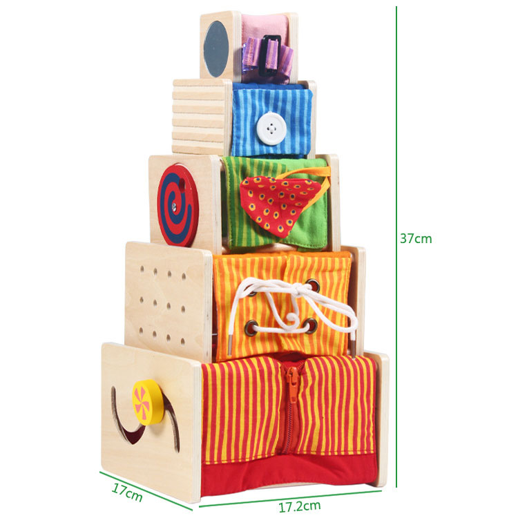Stapeltürme – Verschlüsse üben, Fädeln lernen, Schleifen binden