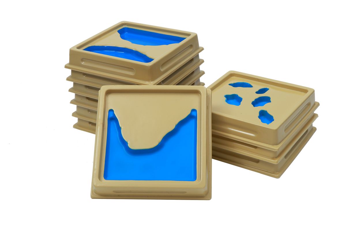 10 reliefierte Kunststofftafeln mit den 10 wichtigsten Land- und Wasserformen