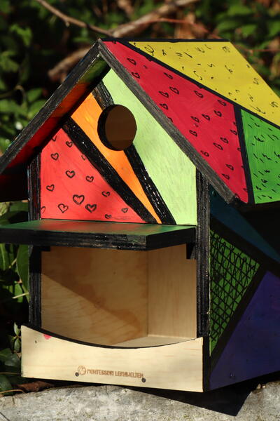 Basteln mit Holz. Mit dem Vogelhaus lernen Kinder, sich verantwortungsvoll um Tiere zu kümmern und mit etwas Geduld und Glück, in der Beobachtung viel über Vögel zu lernen.