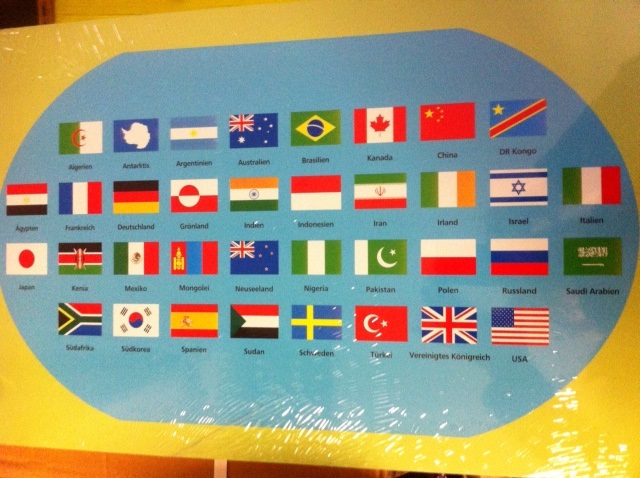 Weltkarte zum Erlernen von Ländern, Regionen, Erdteilen und Länderflaggen.