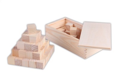 Kompletter Holzkasten mit 64 Holzwürfeln mit den Maßen 3 x 3 x 3 cm passend für die Arbeit mit den Würfelbauten.