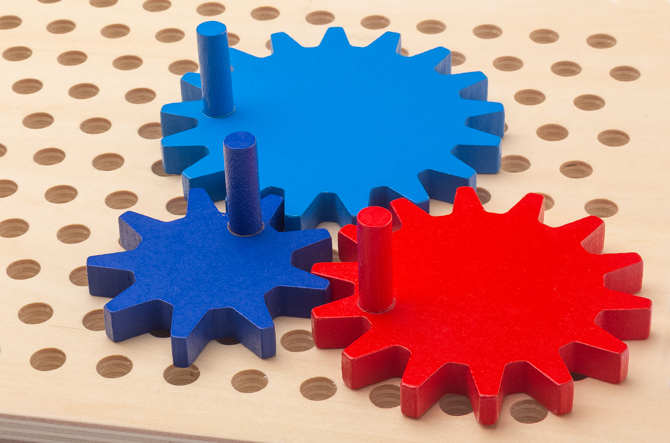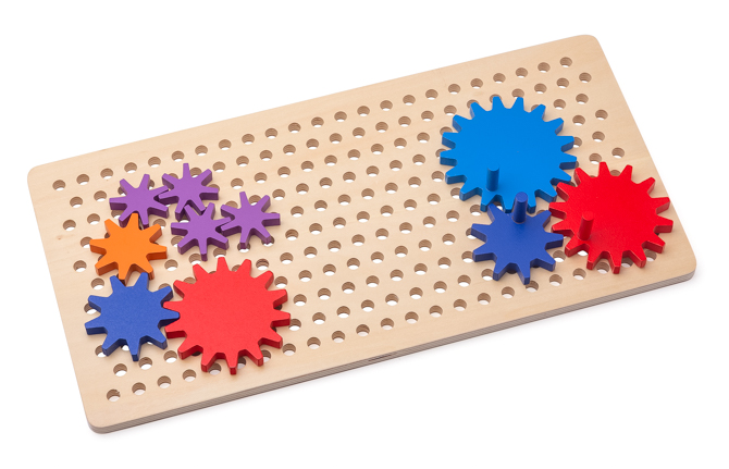 Beim Zahnradspiel können die Kinder selbst Zahnräder in Bewegung setzen und Bewegungsketten bilden.